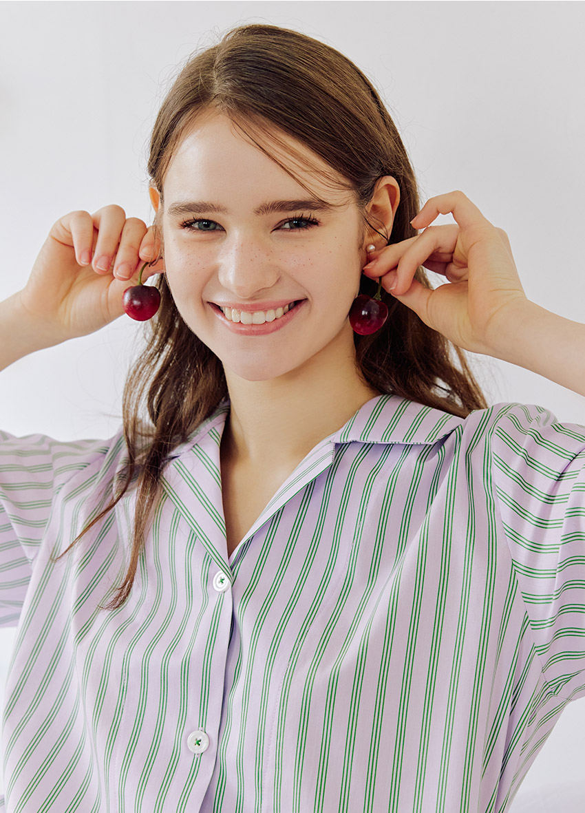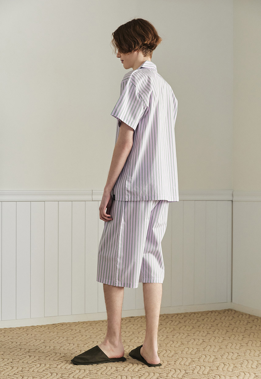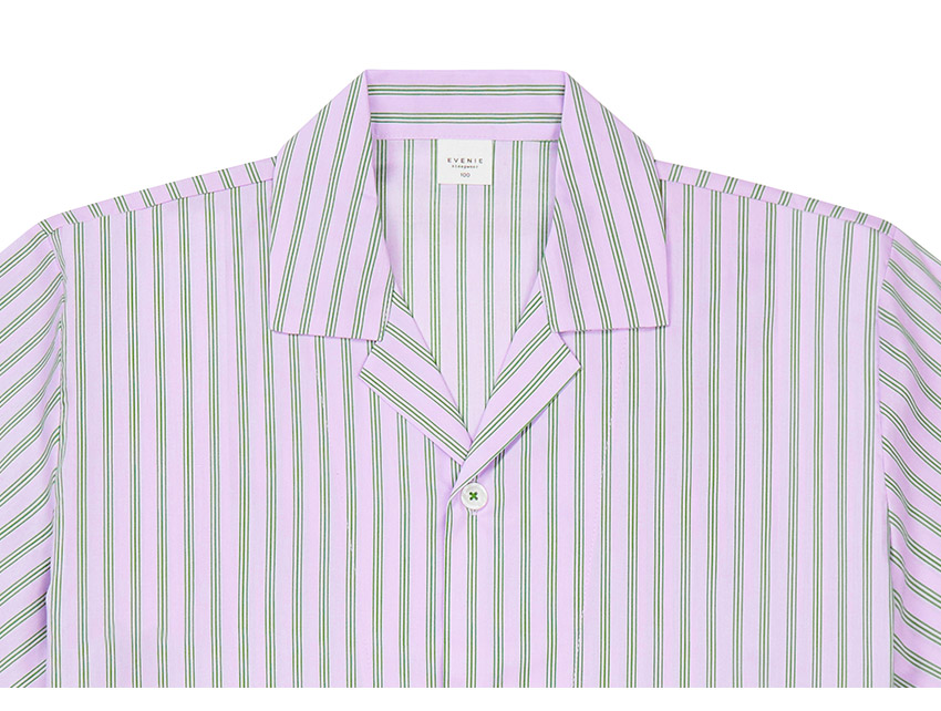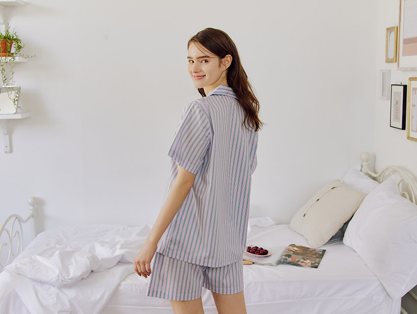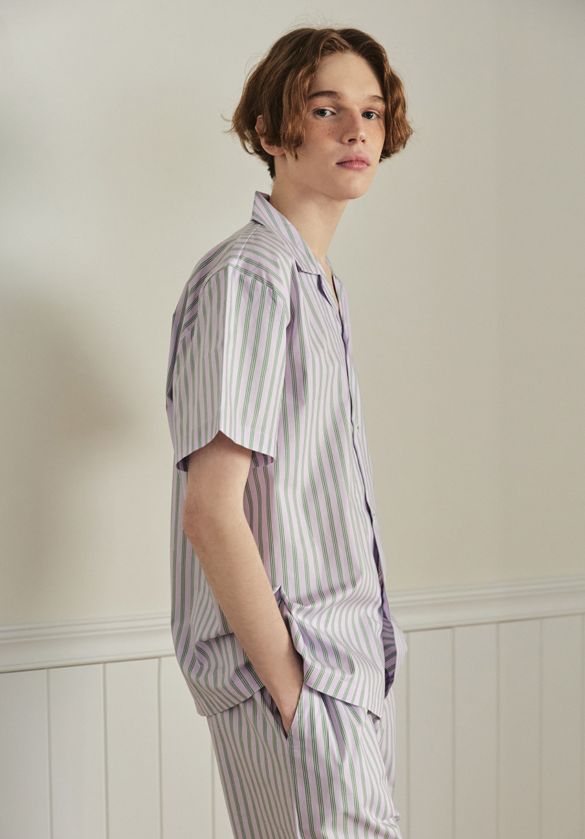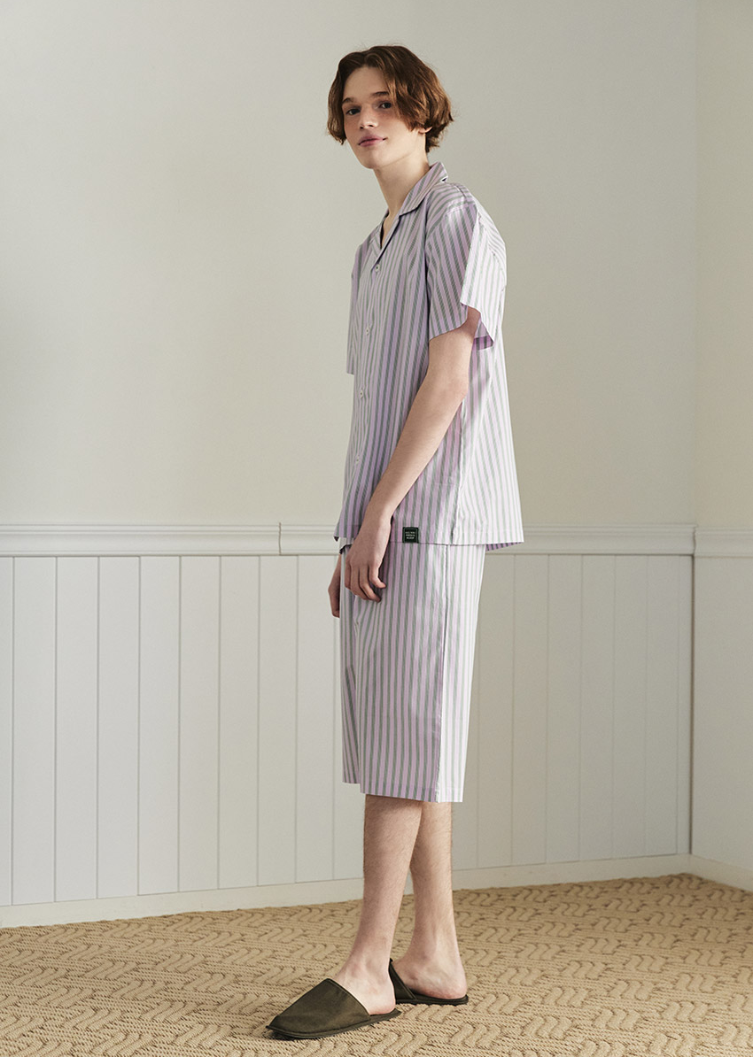 셔츠 느낌의 카라가 돋보이는 레귤러 핏의 파자마 세트.