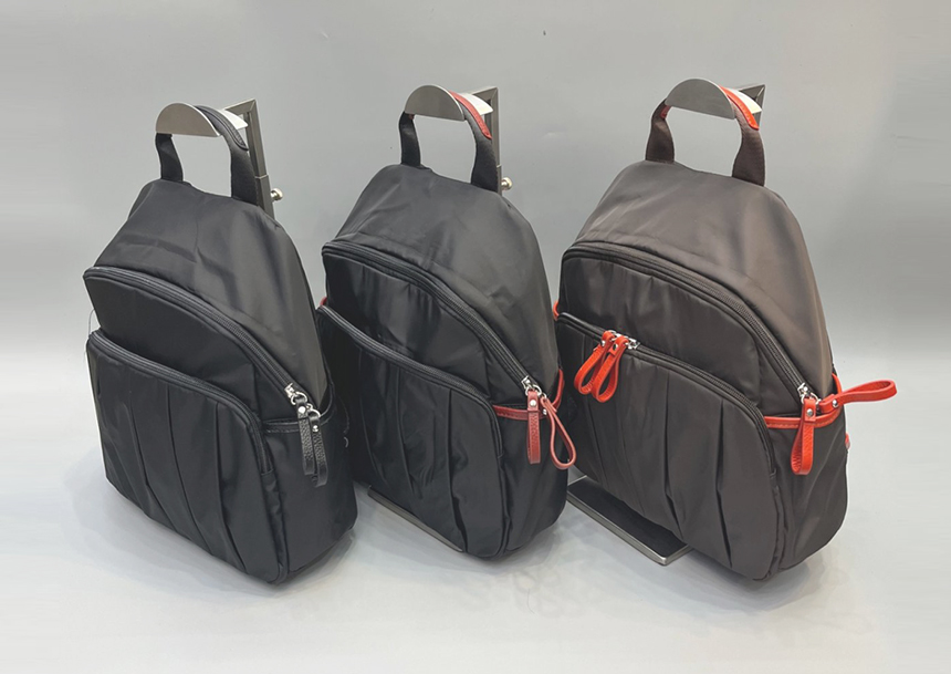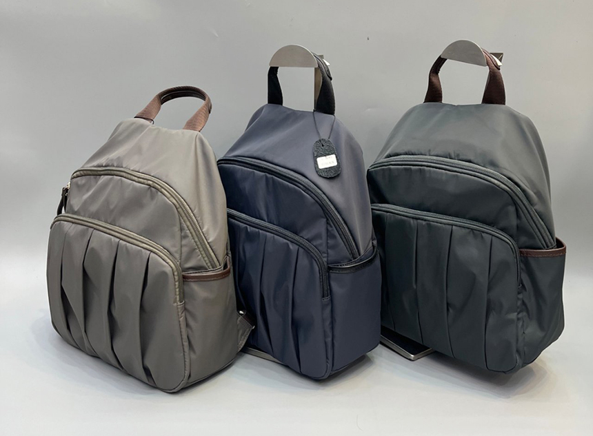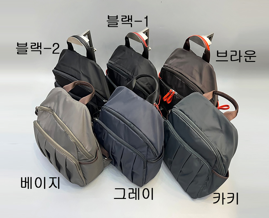 배낭 앞 부분에 색다른 주름 디테일을 넣어 주어