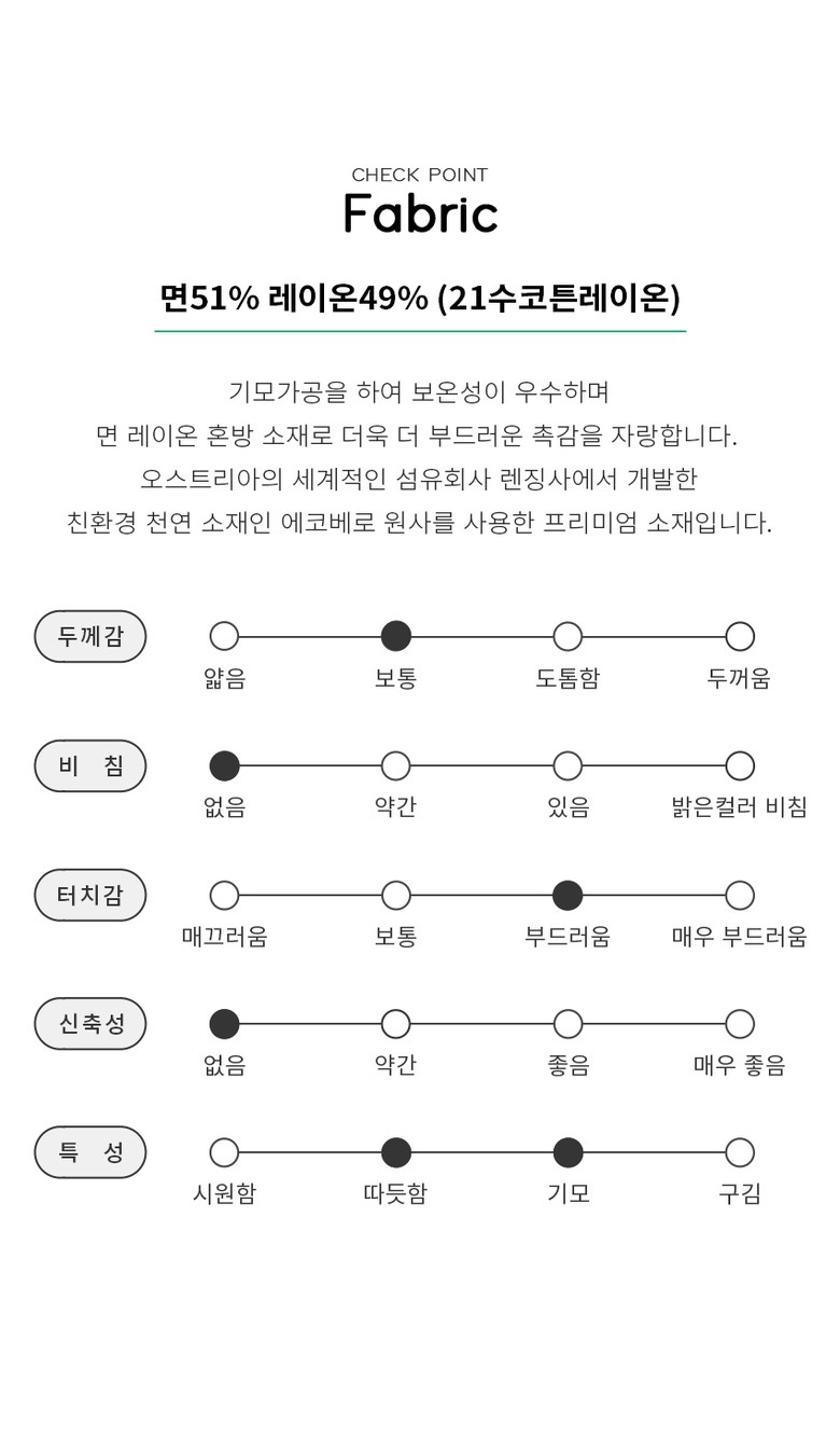 면 100%의 기분좋은 착용감을 주며,