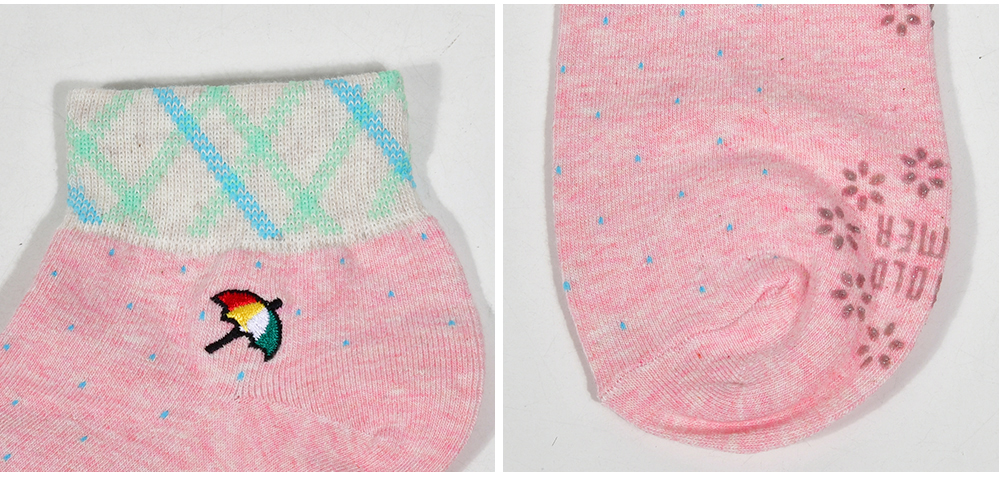 데일리한 컬러의 도트 패턴과 목라인 체크 포인트 양말로
