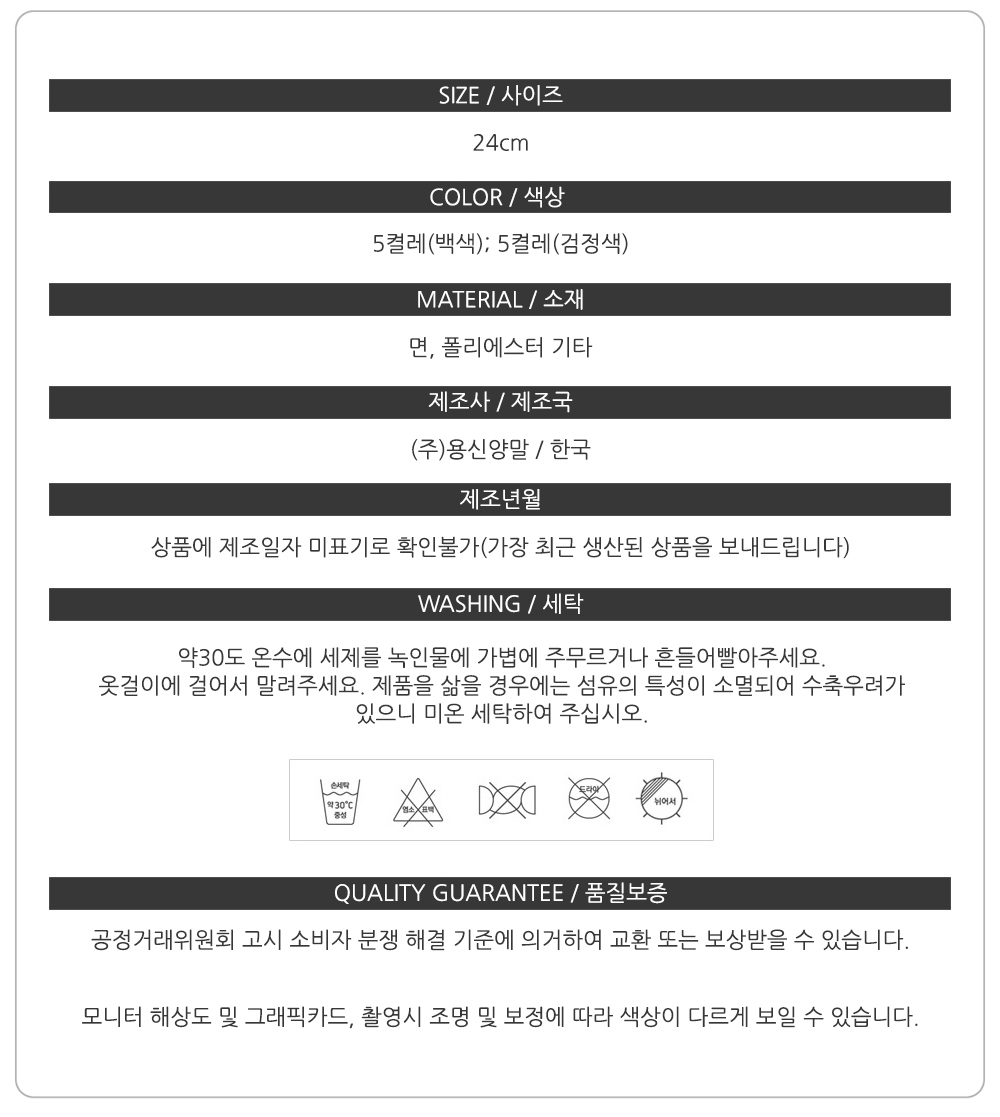 [여성] (용신)심플하고 깔끔하게 패션 UP 숙녀용 무지 스니커즈양말 (0) | 2024.04.30 |
