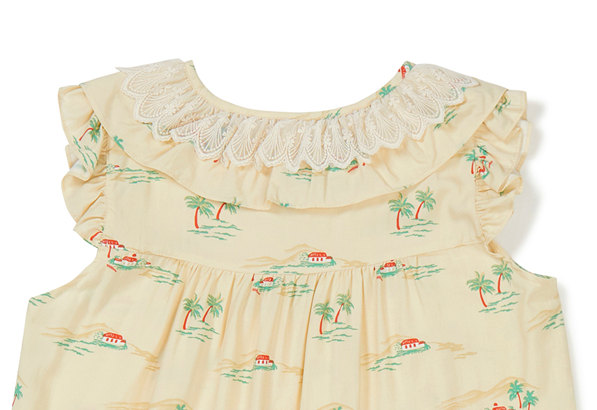 여름 휴양지의 느낌을 핸드 드로잉으로 표현한 디자인.