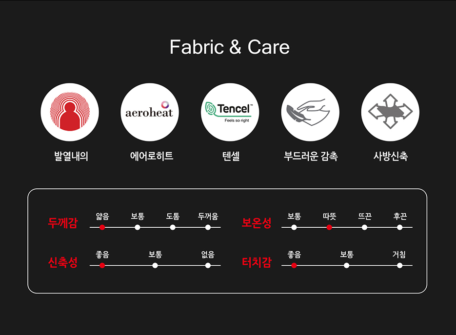 광발열 기능성 소재 에어로히트 U넥 상의 단품입니다. 흡습속건 기능과