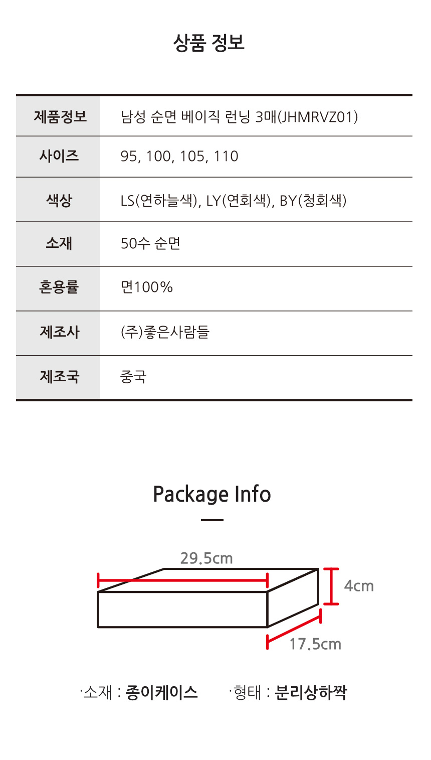 면100 원단으로 터치감이 부드럽고 땀 흡수율이 좋으며 편안한 착용감의 베이직 스타일 런닝 3매입