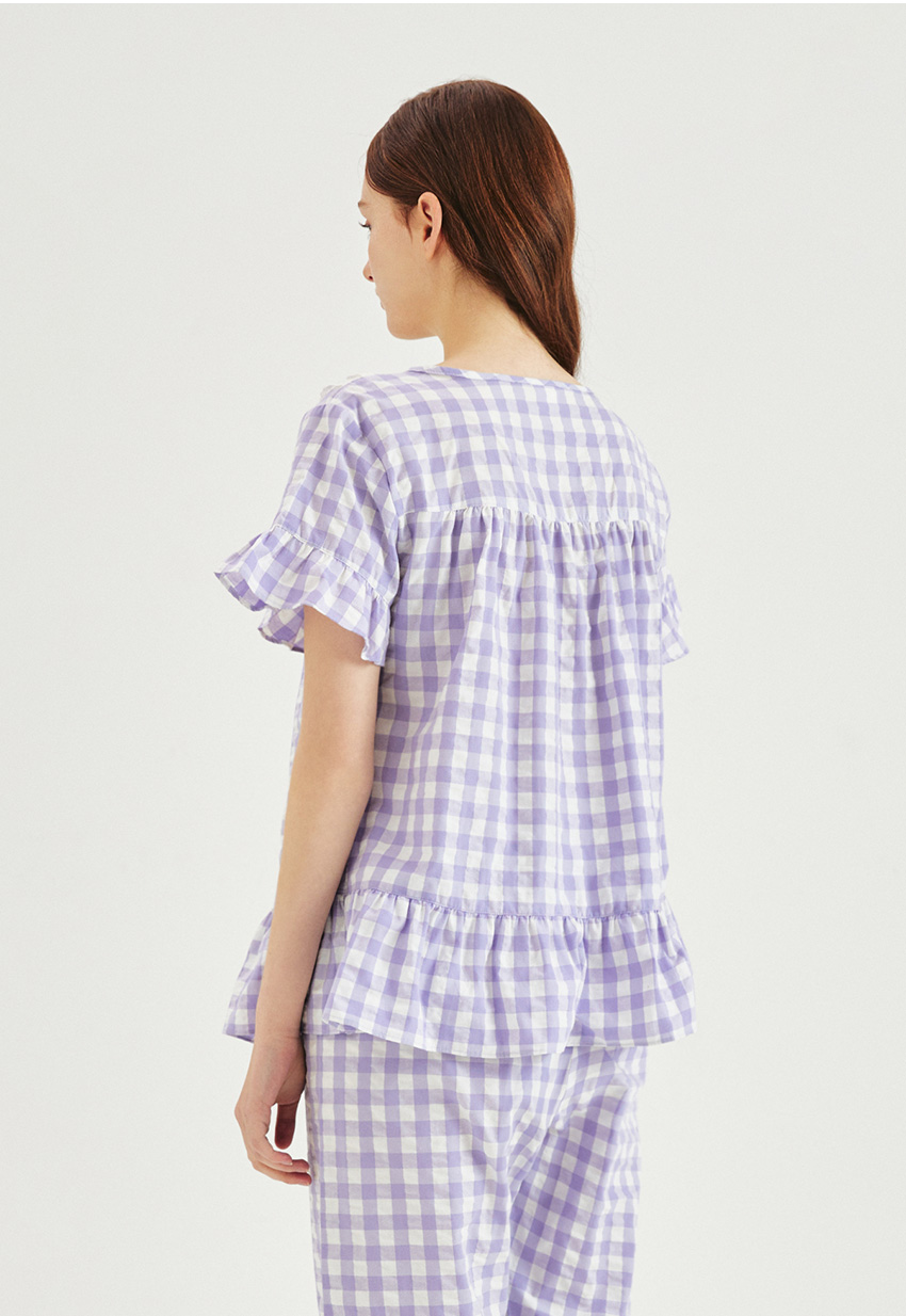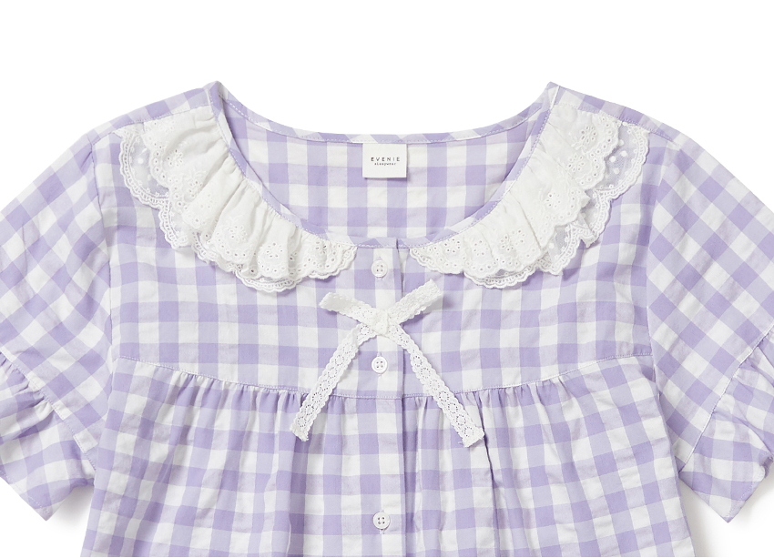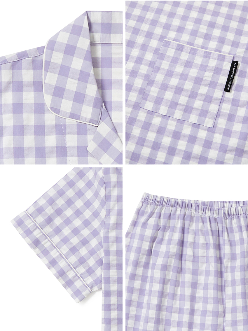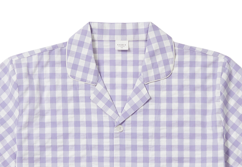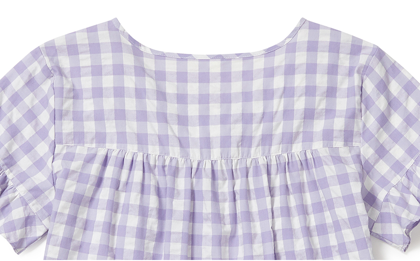 화사한 라벤더 컬러가 사랑스러운 체크 선염 디자인.