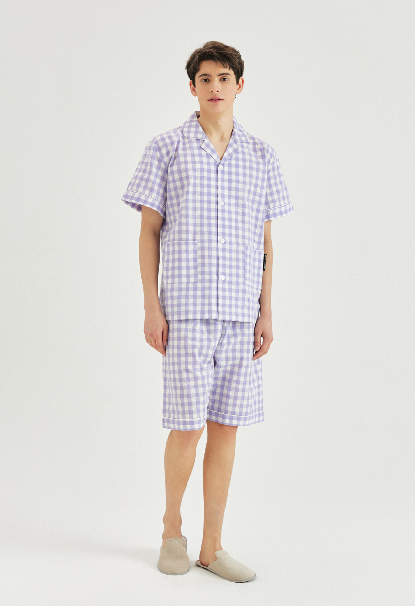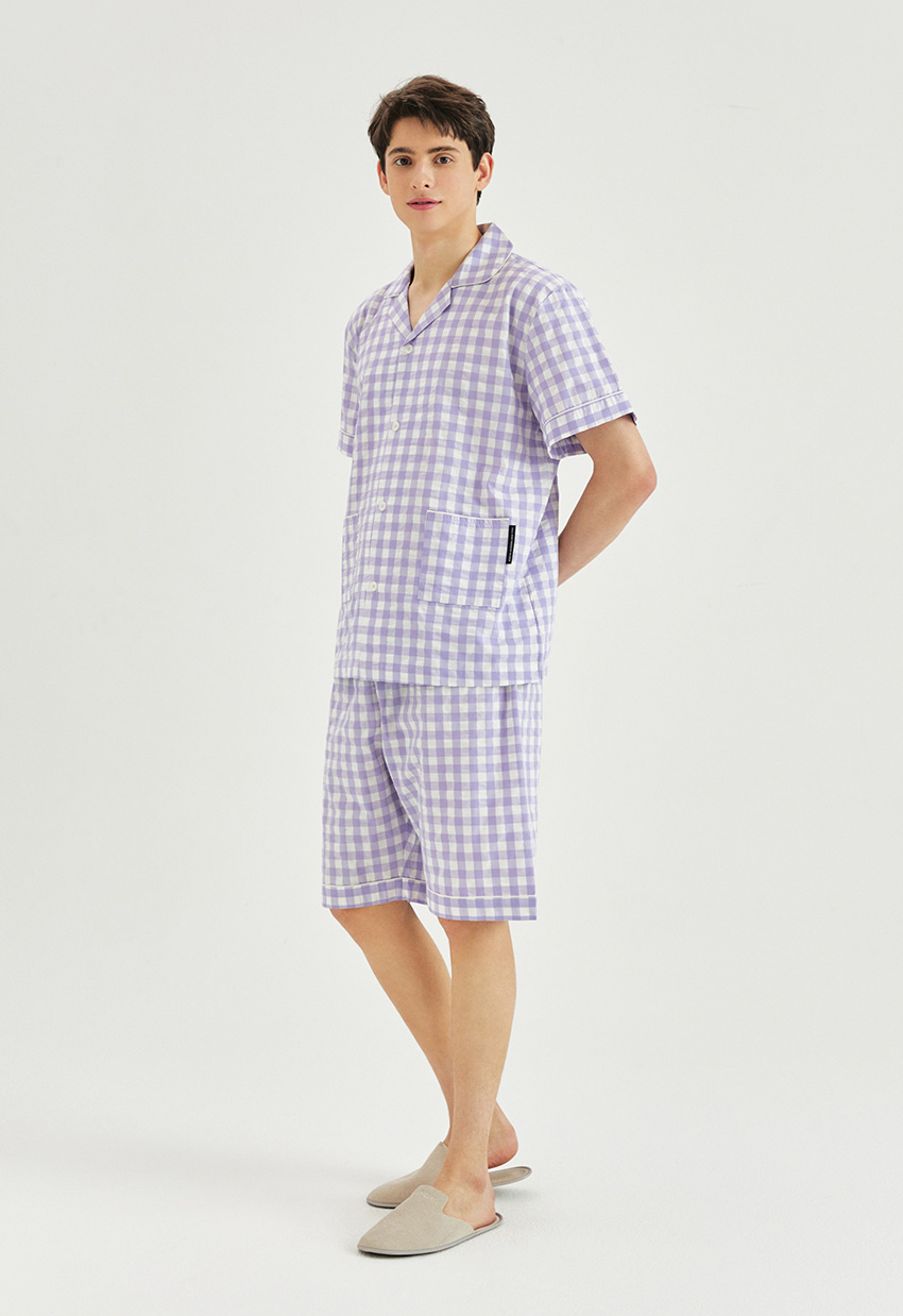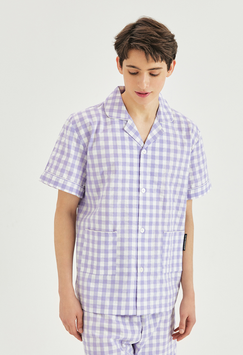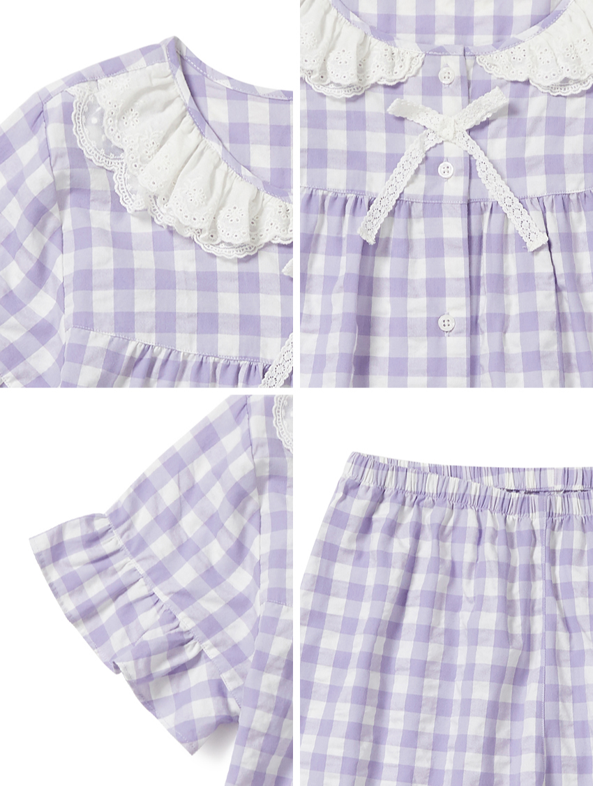 화사한 라벤더 컬러가 사랑스러운 체크 선염 디자인.