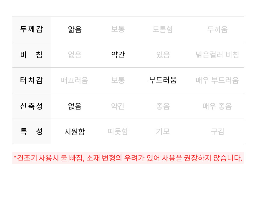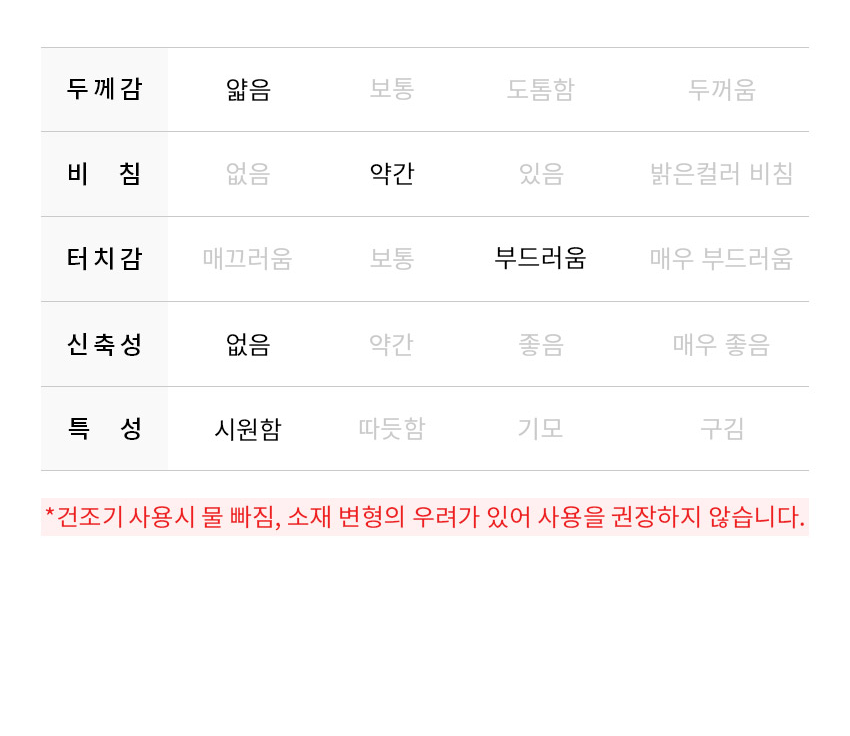 세탁 후에도 주름이 잘 지지 않는 편리한 소재입니다.