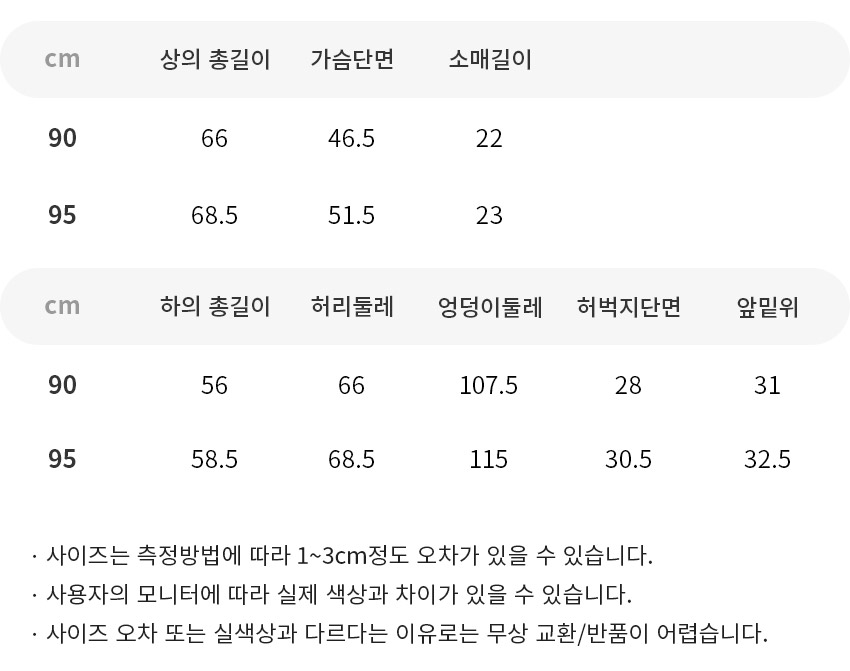 * 샌드 워싱 : 원단의 표면을 보다 더 부드럽게 만들어 착용감을 높여주는