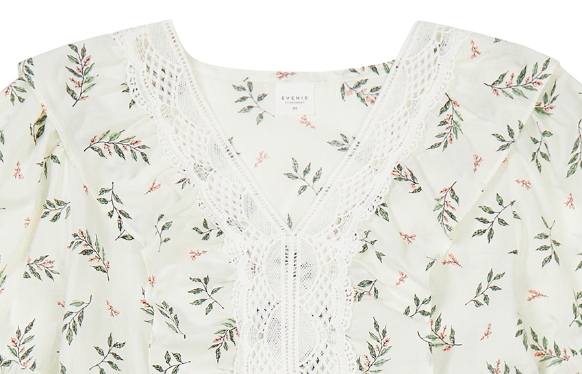 가슴부분에 Y라인으로 우아하게 나눠지는 레이스와 프릴.