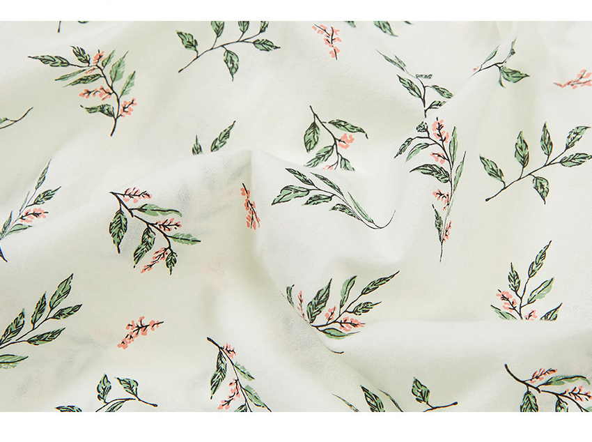 은은한 민트 컬러에 나뭇잎과 핑크빛 열매가 놓인 디자인.