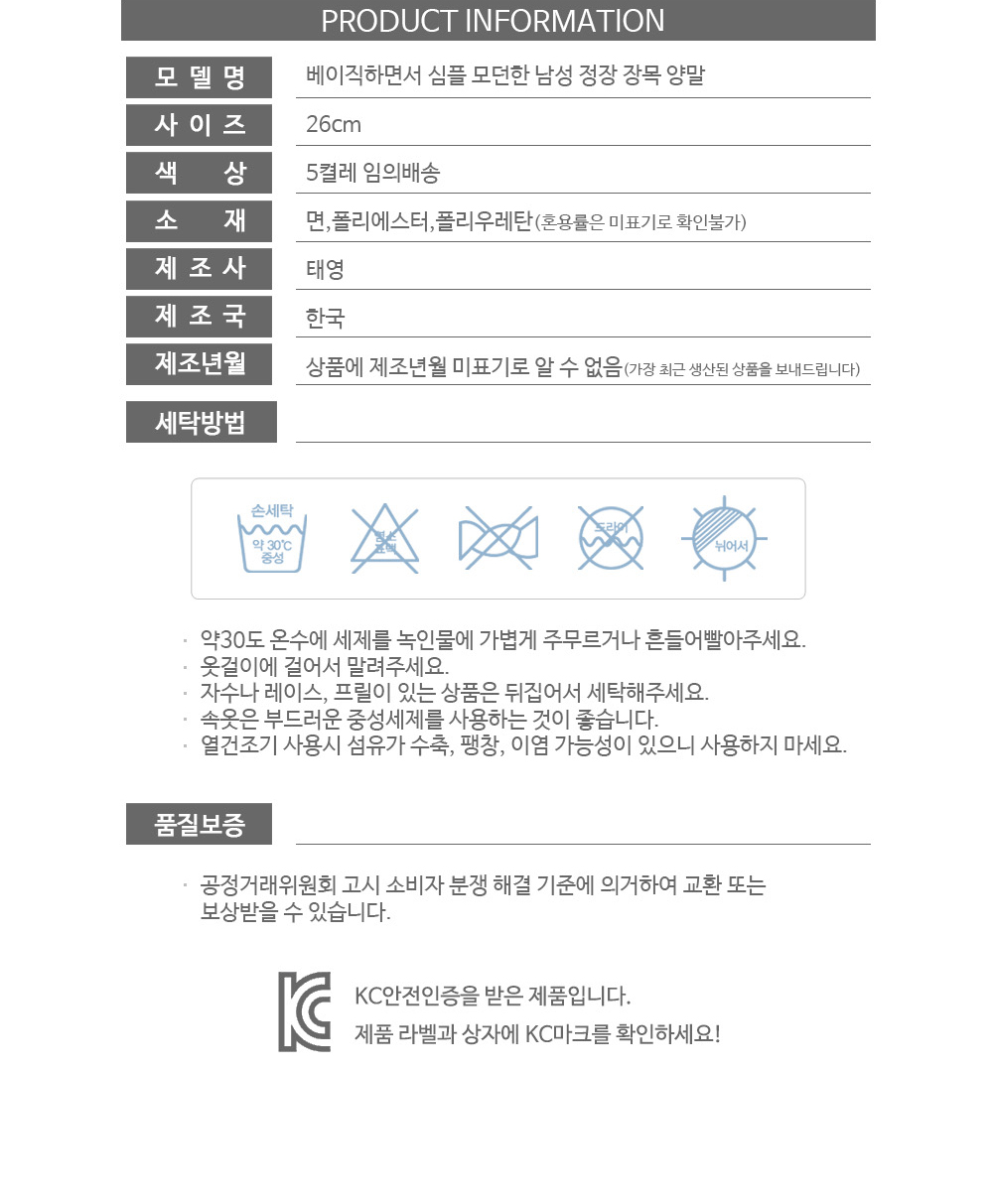 베이직하면서 심플 모던한 남성 정장 장목 양말